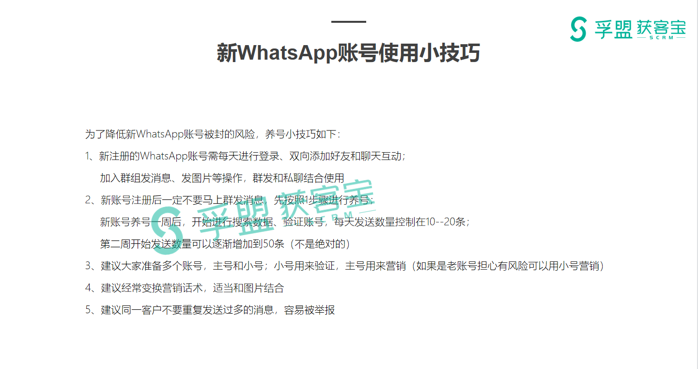 为了降低新WhatsApp账号被封的风险,养号小技巧如下: