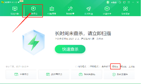 1、点击360木马查杀——点击信任区;