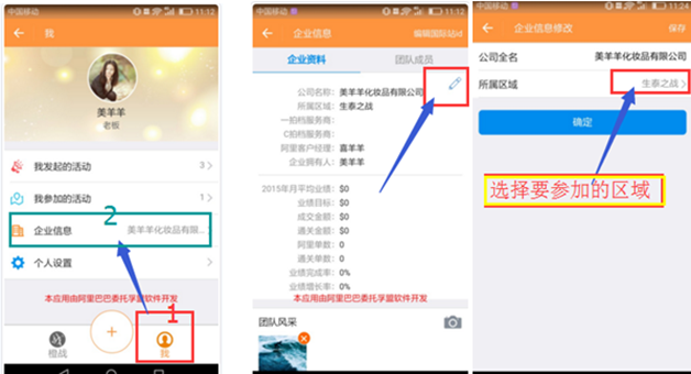 参战企业管理员进入橙战-【我】-企业资料-点击小铅笔修改【所属区域】
