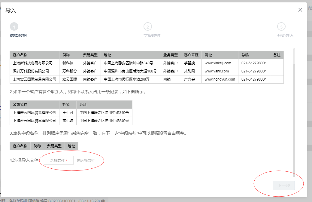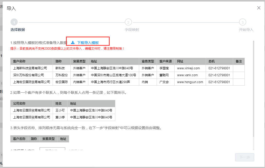 注:整理表格时,需确认信息与系统内是匹配的,不可导入不存在系统的业务员客户或其他系统中没有的信息,会导致客户导入的失败。