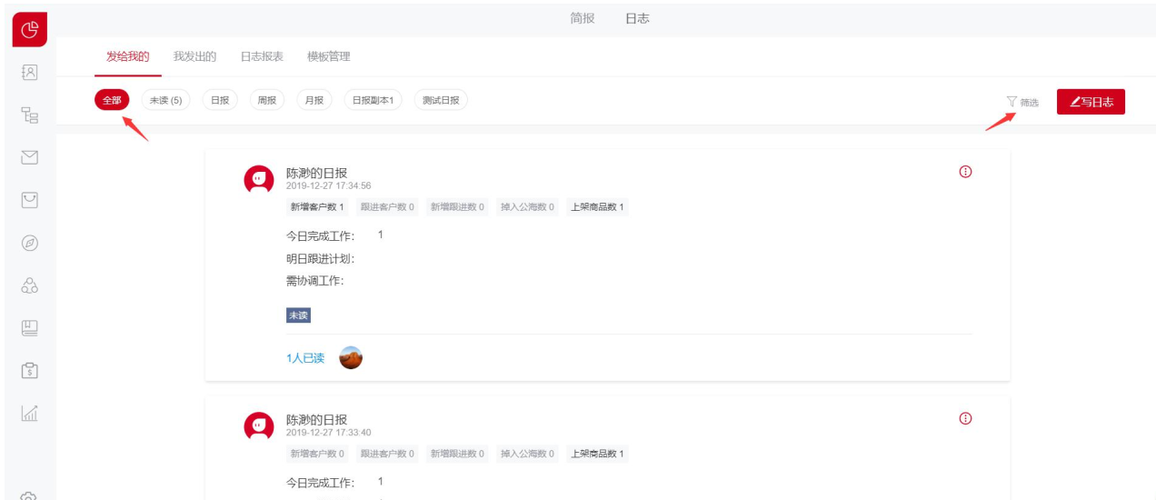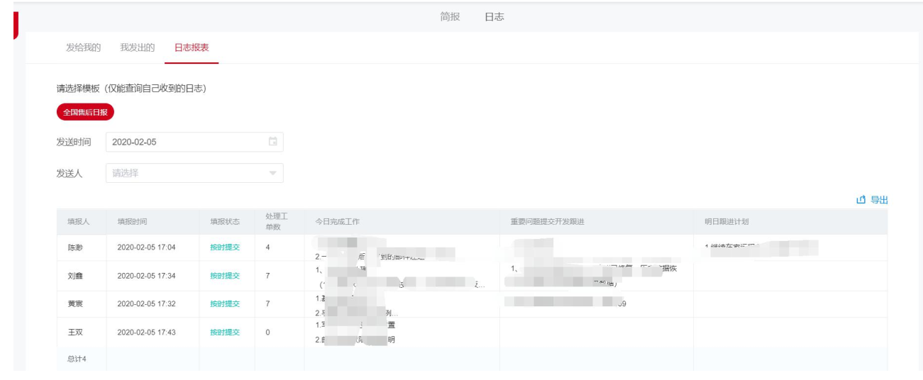 5、 日志报表统计查看, 获取业务跟进客户数、 工单处理等情况统计