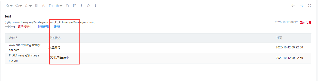 4、到发件箱查看任务状态,单击刷新,更新任务状态